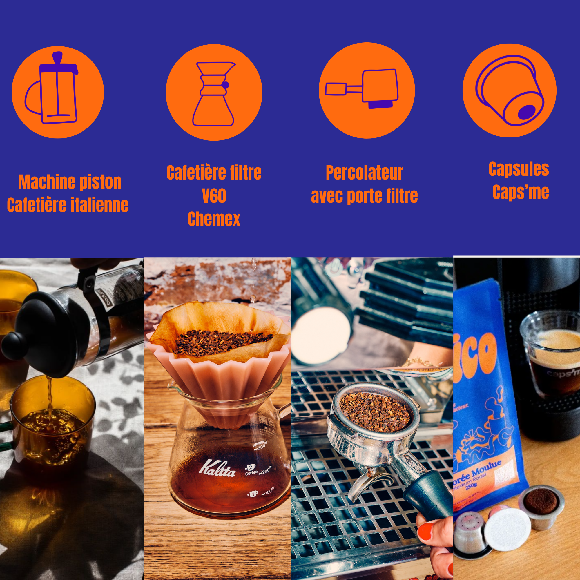 - Version moulue : Préparez-la comme un café, avec une cafetière filtre, une French press ou une machine expresso.